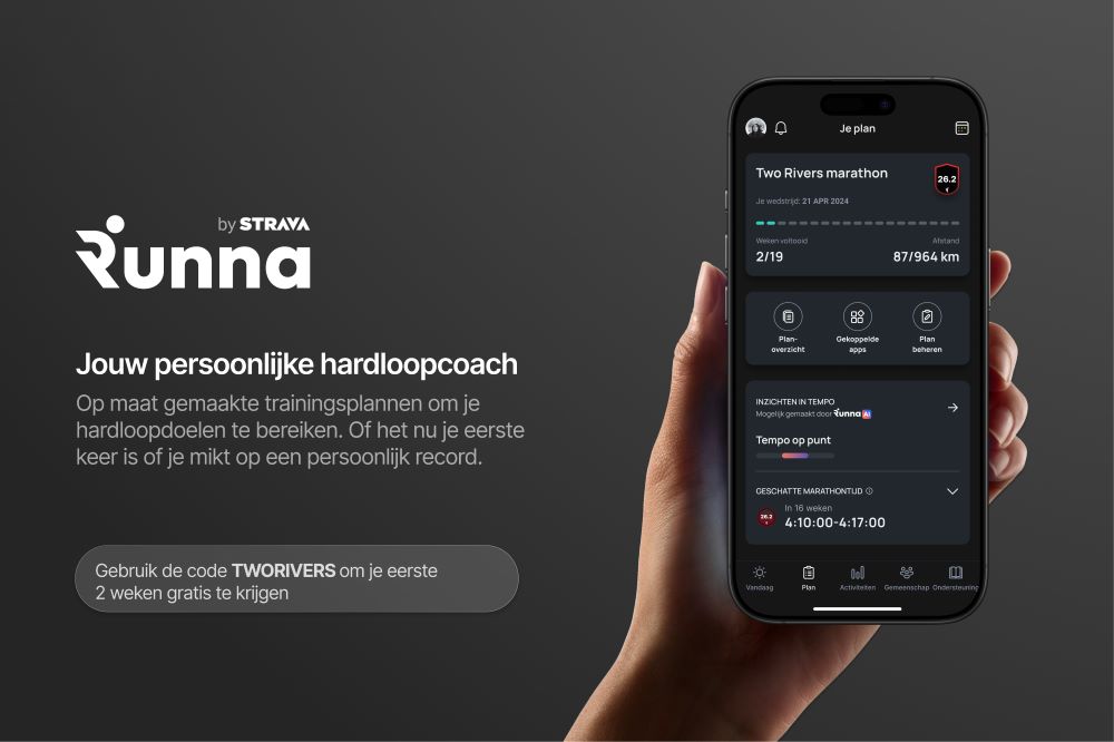 Van je eerste training tot raceday – Runna begeleidt je stap voor stap. Begin vandaag nog met 2 weken gratis coaching via code TWORIVERS of klik op deze link.