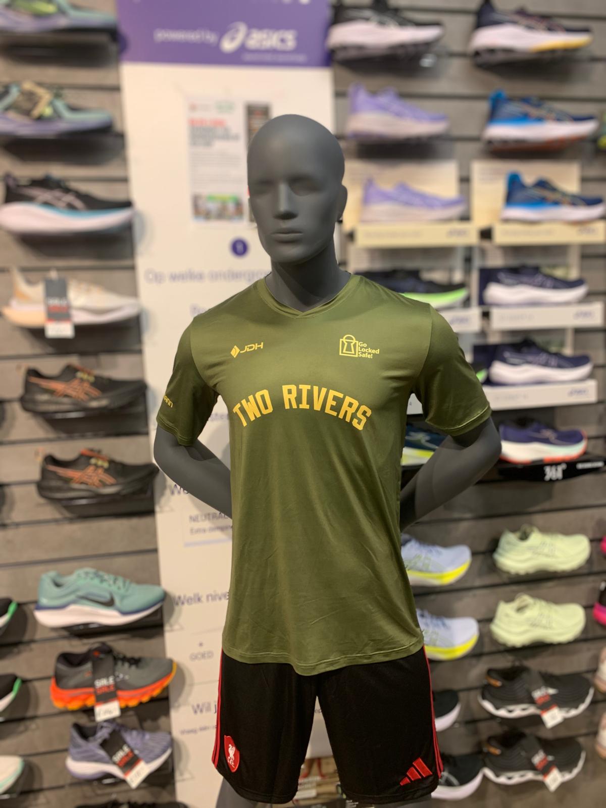 De Two Rivers kleuren zijn door de wasmachine gegaan. Deze retro look vinden we zelf best spannend en we zijn heel benieuwd wat jij er van vindt. De shirts zijn van hoge kwaliteit, gemaakt door JDH Sports, vooral bekend van hockey en tennis.